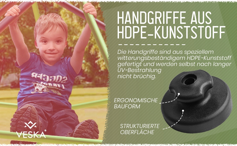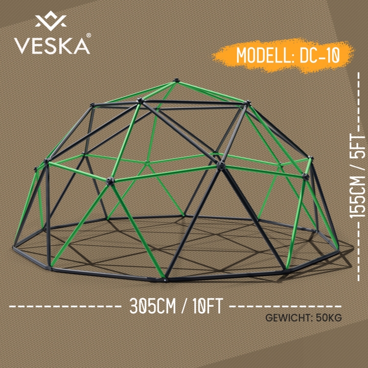 Interaktywnie zaprojektowana kopuła do wspinaczki „DomeClimber” marki VESKA® zapewni dzieciom radosną zabawę we własnym ogrodzie. Dzięki specjalnej i zarazem solidnej konstrukcji, z kopuły może korzystać jednocześnie nawet 4 dzieci. Odporna na warunki atmosferyczne rama wykonana jest z ocynkowanej ogniowo stali nierdzewnej. Kopuła do wspinaczki jest wolnostojąca – można ją umieścić w dowolnym miejscu ogrodu.